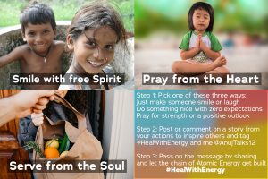 Step 2: Post or comment on a story from your actions to inspire others and tag #HealWithEnergy and me @AnujTalks12 on all social media.