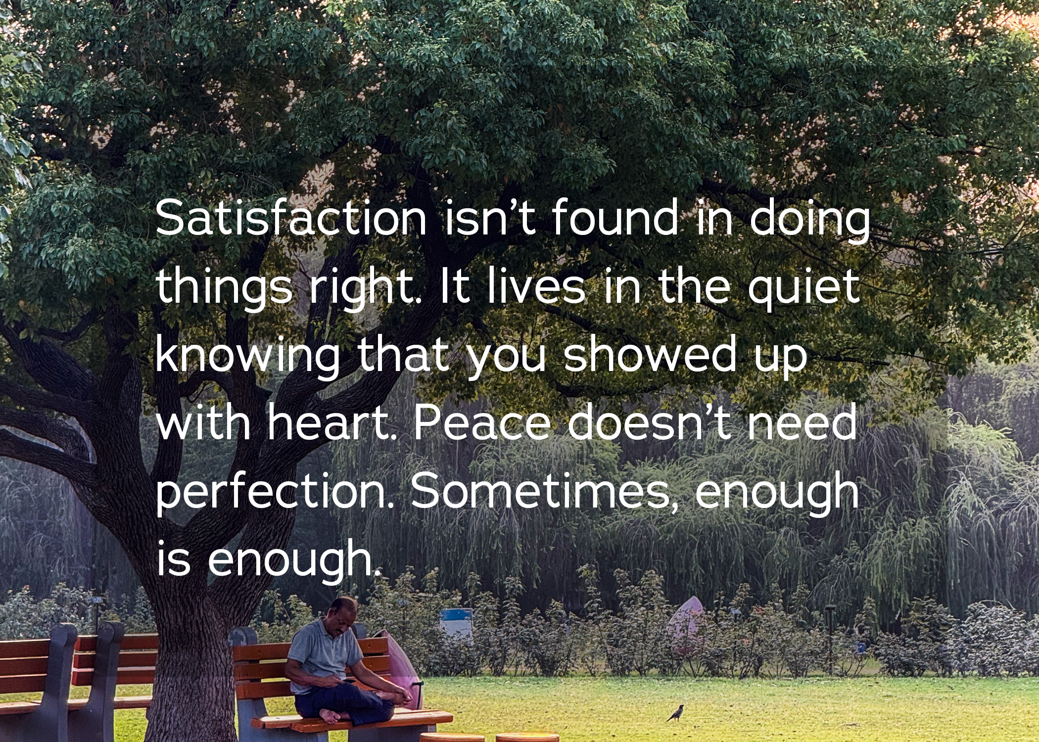 Sometimes we make the “right” decision but still feel uneasy. Other times, we do something messy, flawed, imperfect—and yet feel completely at peace. That peace isn’t because everything went our way. It’s because something in us says, “You showed up with care. You tried. That’s enough.”